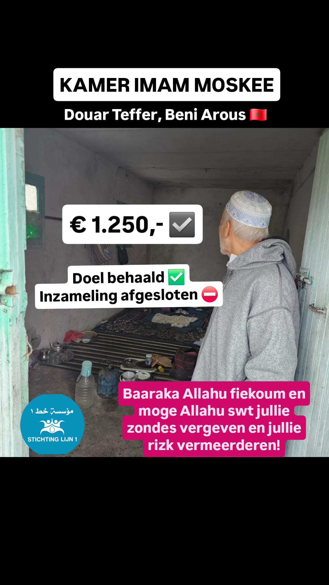 Nu willen we ook de kamer van de imam opknappen, zodat hij in rust, waardigheid en toewijding kan blijven dienen in het Moskee.
